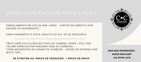 A Chiara Tees é uma marca de mãe e filha, que desenvolve produtos de forma artesanal e personalizados, especialmente para você. Somente sob encomenda (consulte prazos no banner inicial ou na página de cada produto).